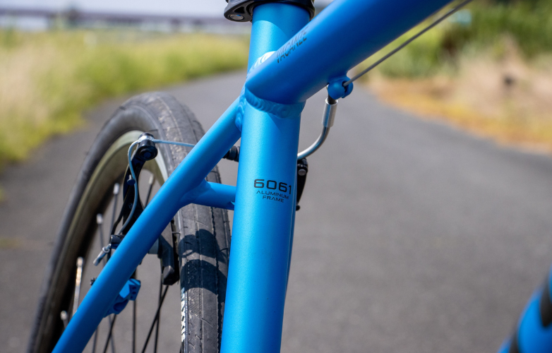フレームには重量剛性比と柔軟性のバランスが良い6061アルミを使用。上位モデルゆずりの軽量性と頑丈さを両立しながら、乗り心地は固くなりすぎない程度に整えられている。まずはお店で本体の軽さを体感してみてほしい。