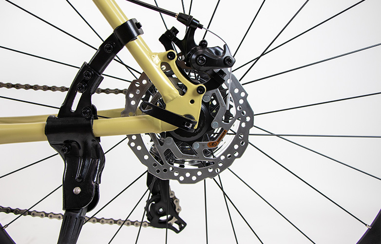 VACANZE 2をベースに天候に左右されにくく安定した高い制動力を持つ機械式ディスクブレーキを標準搭載。雨上がりで路面が濡れている状態でも、ブレーキレバーを軽く握るだけでしっかりと止まることができる。